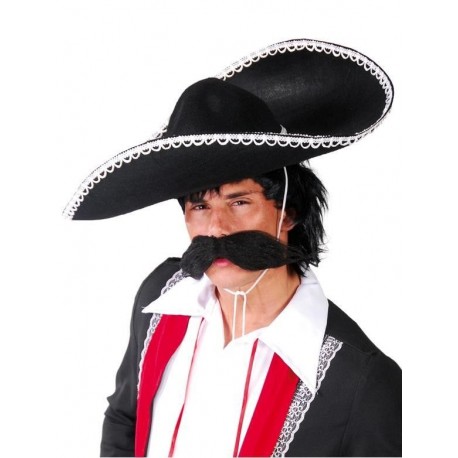 Sombrero mejicano mariachi barato de fieltro negro, medida de 55 cm, ideal para complemento del disfraz de mariachi o catrin en halloween.