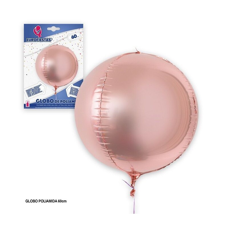 Globo redondo en color rosa dorado de 60 cm en 4D. Se puede hinchar con helio o aire (helio no incluido)