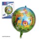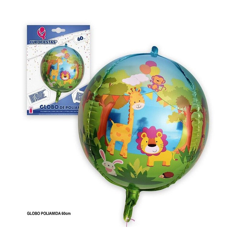 Globo redondo con dibujos de animales de la jungla de 60 cm en 4D. Se puede hinchar con helio o aire (helio no incluido)