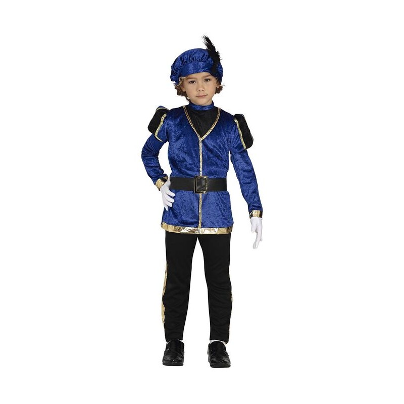 Disfraz paje de rey azul para niño tallas 3-4, 5-6, 7-9 o 10-12 años. Incluye gorro, camisa, cinturon y pantalon.