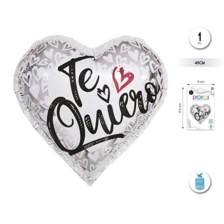 Globo corazon foil Te Quiero blanco y plata corazones de 43 cm, vale para helio o aire. Ideal para regalo en eventos emotivos o san valentin
