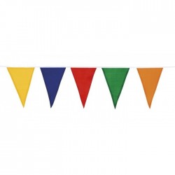 Guirnalda banderines triangulares de algodón 10 mt baratos, guirnalda banderines triangulares de algodón de 10 metros de longitud, al ser de algodón son prefectas para serigrafiar y poner nombres. Tienda de banderas y banderines baratos online