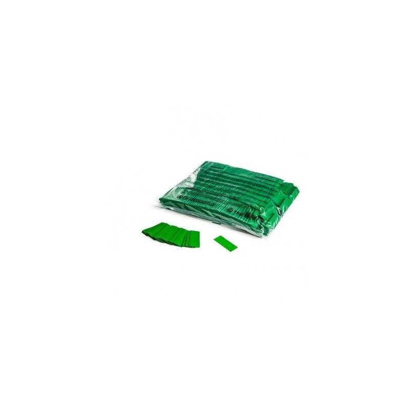 Confeti de papel ignífugo rectangular Verde, según normativa vigente. Colores sólidos y en paquetes de 1 Kg. Dimensiones: 55x17 mm.