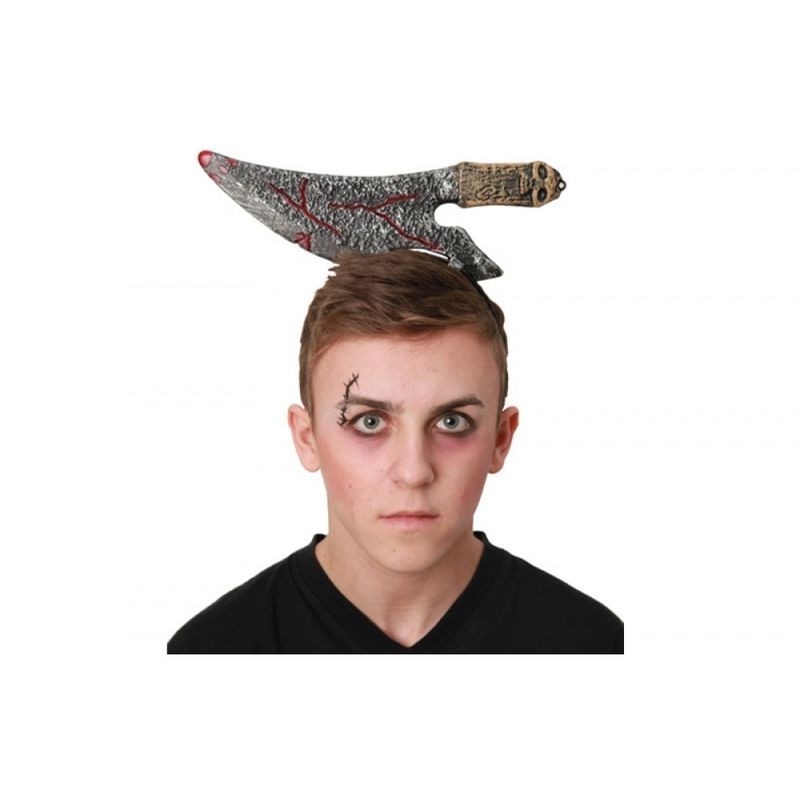 Hacha barato atravesando la cabeza para halloween, diadema que simula que te han clavado un hacha en la cabeza