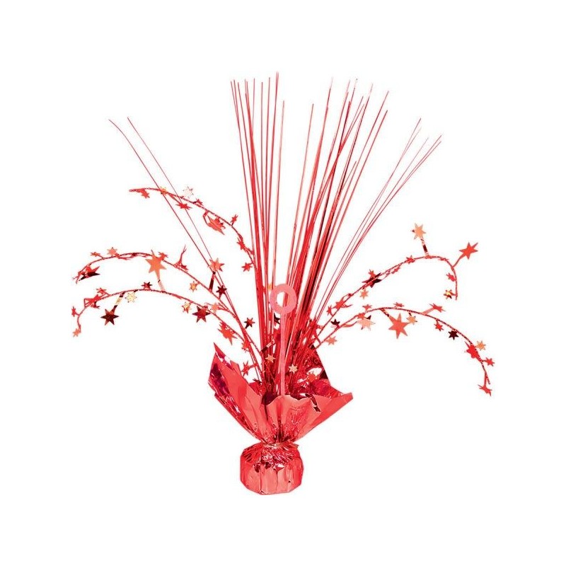 Peso para globos decorado como centro de mesa con estrellas y metalizado. Sirve para atar unos 15-20 globos con helio. Color roj
