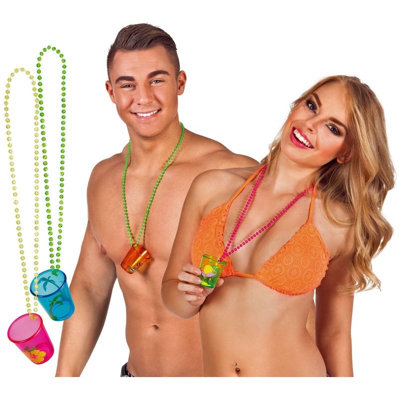 Vasos de chupito hawaianos con colgante colores surtidos, No se puede elegir el color se sirve según el stock que quede. Tus disfraces baratos tienda online de articulos de fiesta