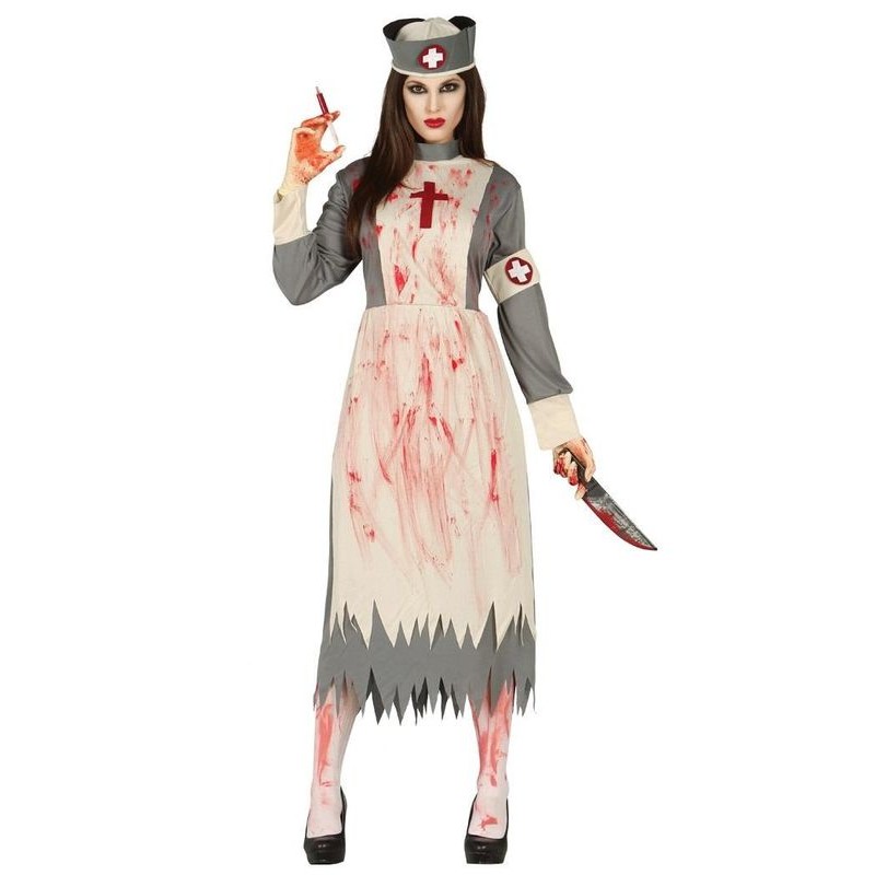 Incluye tocado y vestido. En el hospital psiquiátrico, hasta los mas dementes temen a la enfermera mas sangrienta de todos los tiempos. Terrorífico disfraz de enfermera malvada ideal para halloween. Talla M o L de mujer