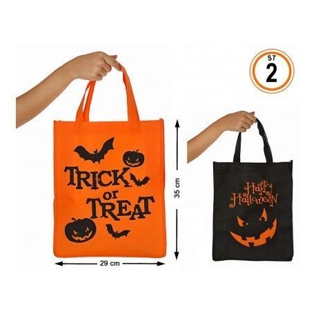 Bolsa recogecaramelos para la fiesta de halloween. Precio por unidad, 2 modelos surtidos se sirven aleatoriamente según disponibildad, si desea un modelo en concreto llamenos. Medidas 37 X 42 cm