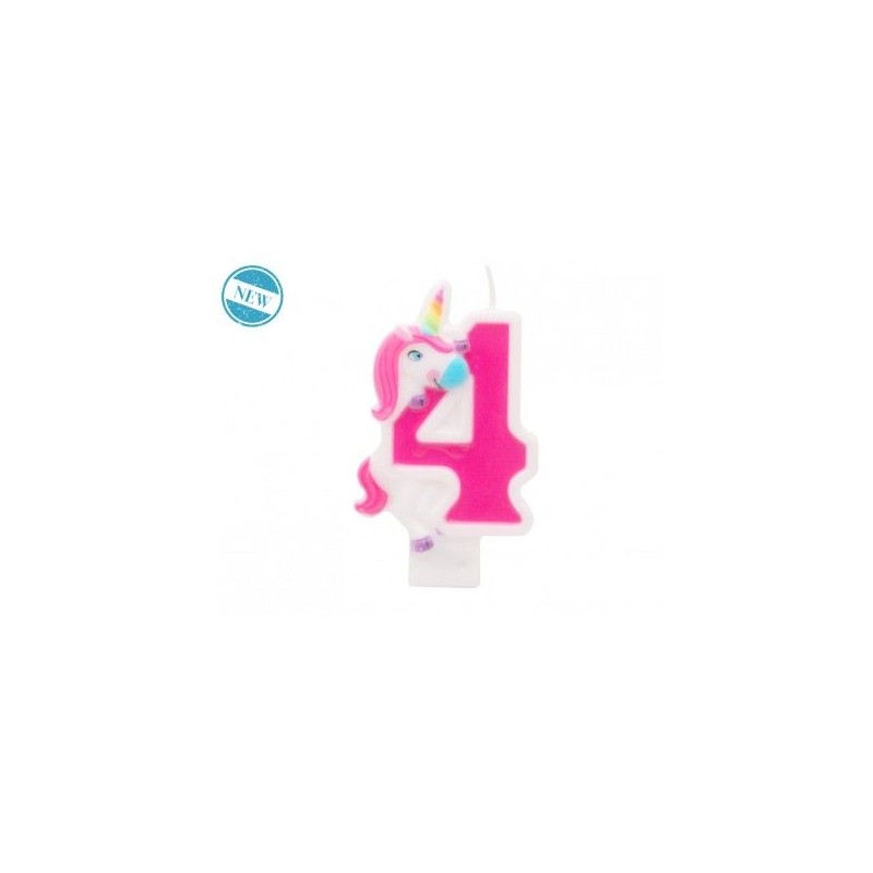 Vela Unicornio numero 4, preciosa vela de unicornio para tarta de cumpleaños