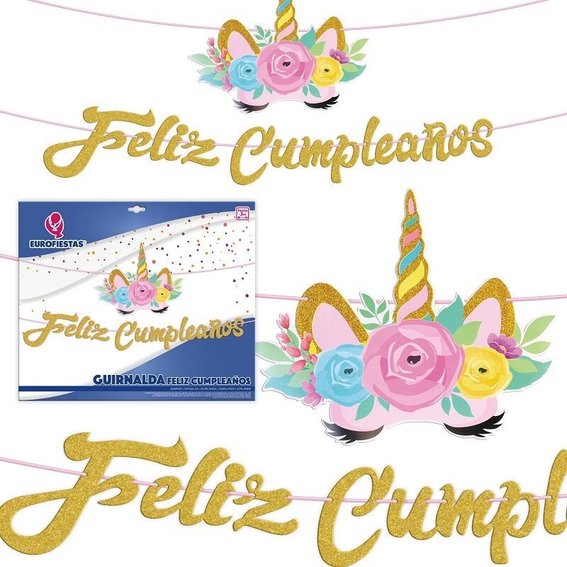 Guirnalda feliz cumpleaños unicornios ideal para la decoracion de tu fiesta de cumpleaños tematica unicornio, elegante y sencilla. Tamaño 3 metros