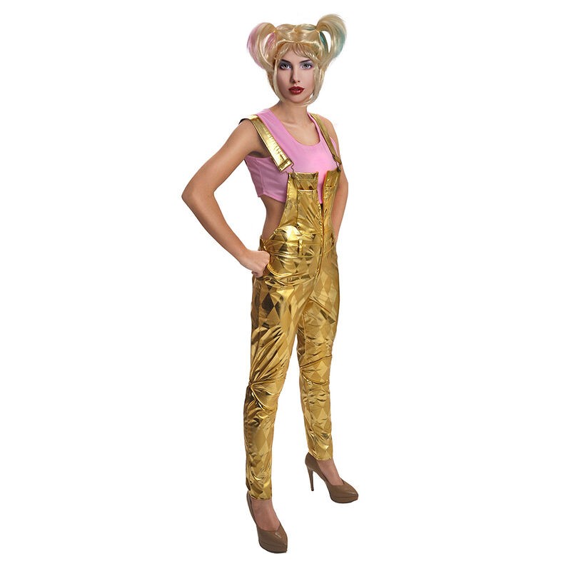 Disfraz Harley Quinn de la pelicula aves de presa mujer, mono dorado. Incluye traje y peluca. Traje de harley quinn original con licencia oficial. Tallas S o M de mujer