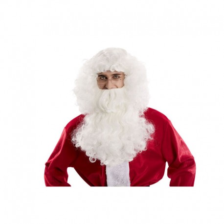 Peluca y barba Papa Noel blanca, peluca de calidad para representaciones de navidad o reyes profesionales en centros comerciales o ayuntamientos