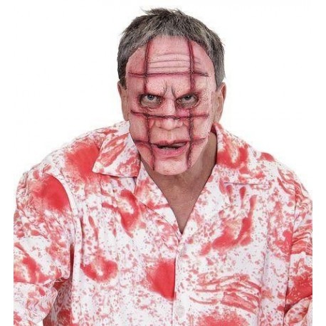 Media careta de asesino con cicatrices, cara rajada para halloween barata.