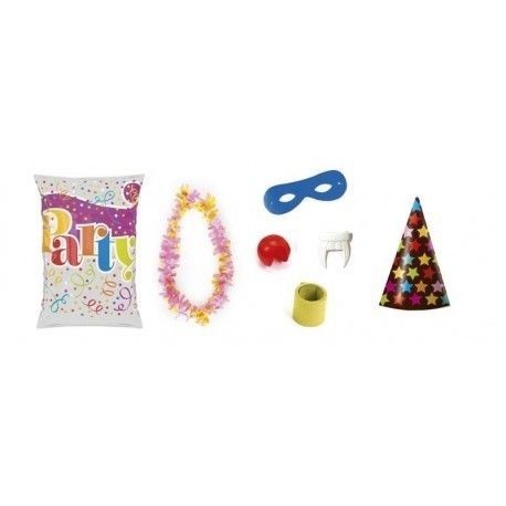 Bolsas de cotilln baratas para nochevieja, pasa una noche divertida para el fin de ao.Incluye: nariz de payaso antifaz gorro de cartn collar de plstico dentadura de vampiro serpentina en bolsa metalizada opaca