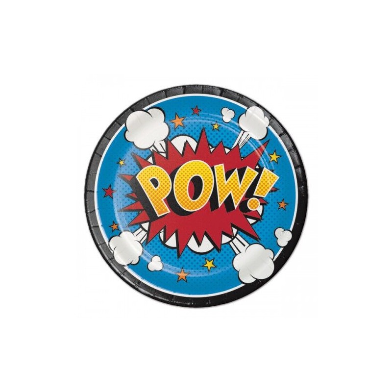 Platos superheroes 8 uds 18 cm, platos de carton para fiesta tematica de cumpleaños similar a superzings. .Incluye 8 platos de 18 cm de diametro
