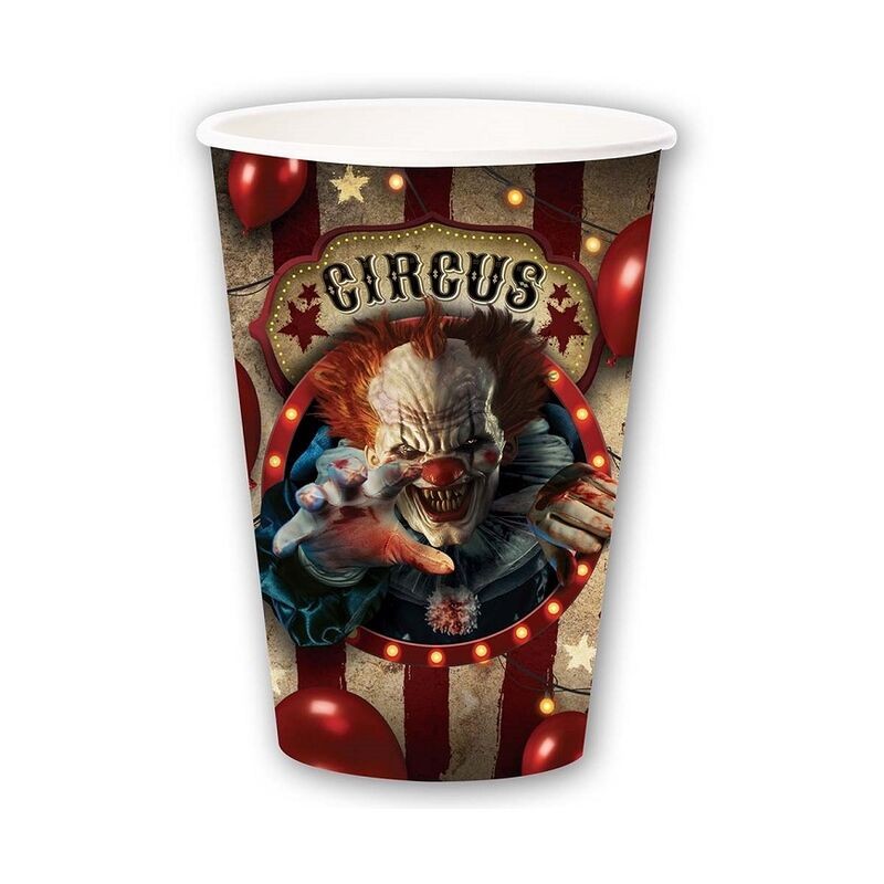 Vasos fiesta payaso terror globo 6 uds 11 cm, decoracion tematica para fiesta de halloween o circo terror