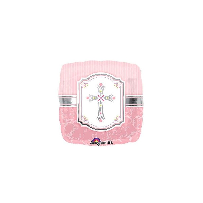 Globo comunion rosa con cruz de 45cm ,se puede hinchar con helio.