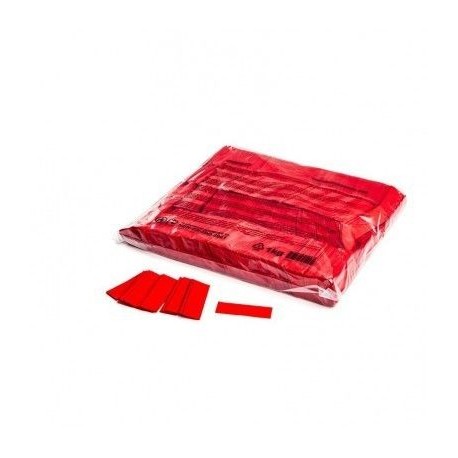 Confeti de papel ignífugo rectangular Rojo, según normativa vigente. Colores sólidos y en paquetes de 1 Kg. Dimensiones: 55x17 mm.
