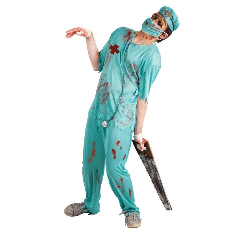 Terrorífico disfraz de cirujano zombie. Disfraz de miedo ideal pala halloween. Incluye camiseta, pantalón, mascarilla y gorro. Tallas M o L hombre, conviertete en un personaje de walking dead