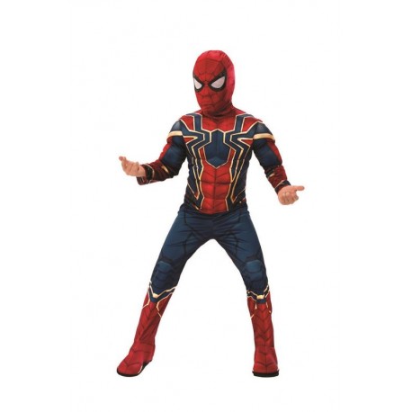 Disfraz Iron Spider endegame para niño, gama premium barata, traje original de Spiderman que incluye mono musculado con cubrebotas y mascara de tela.
