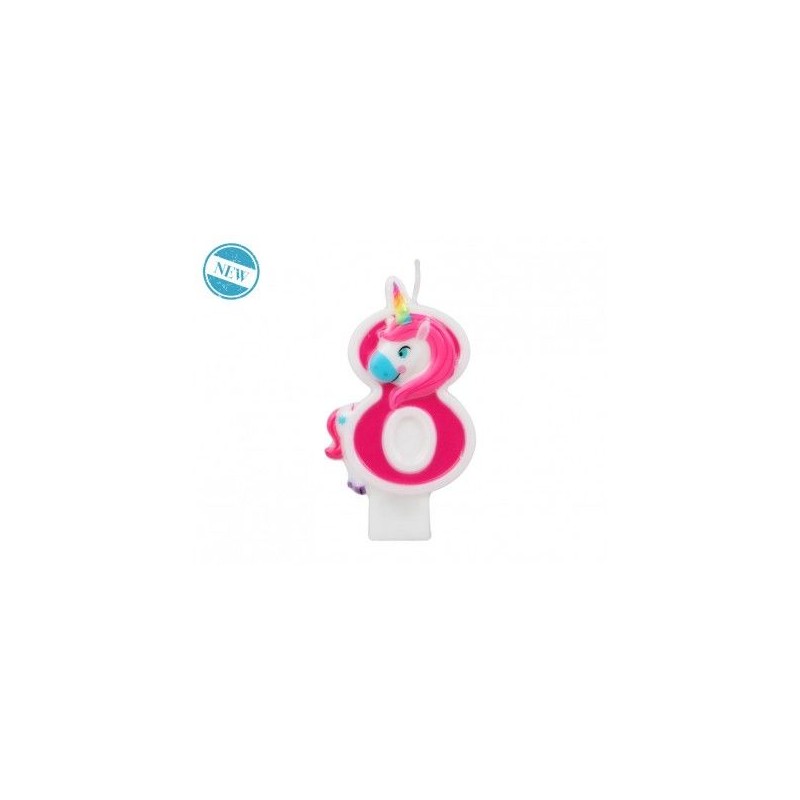 Vela Unicornio numero 8, preciosa vela de unicornio para tarta de cumpleaños