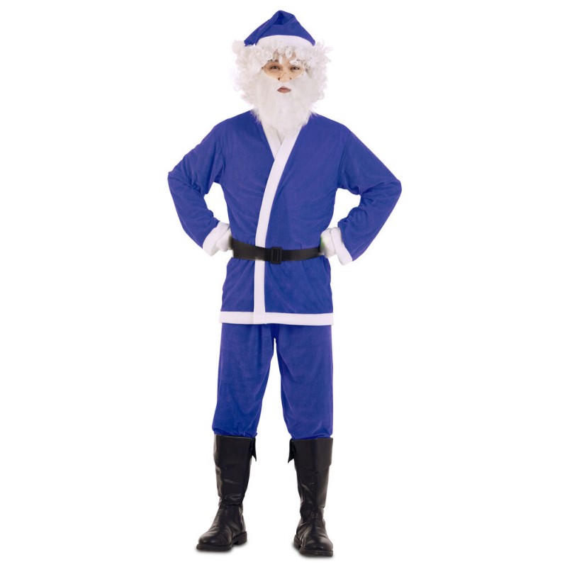 Disfraz papa noel azul para adulto talla Lincluye pantalon, chaqueta, cinturon, gorro y barba