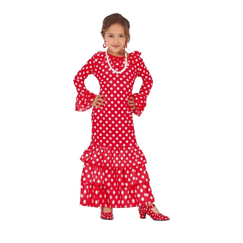Disfraz sevillana vestido rojo para niña tallas 3-4, 5-6 , 7-9 o 10-12 años. Incluye vestido