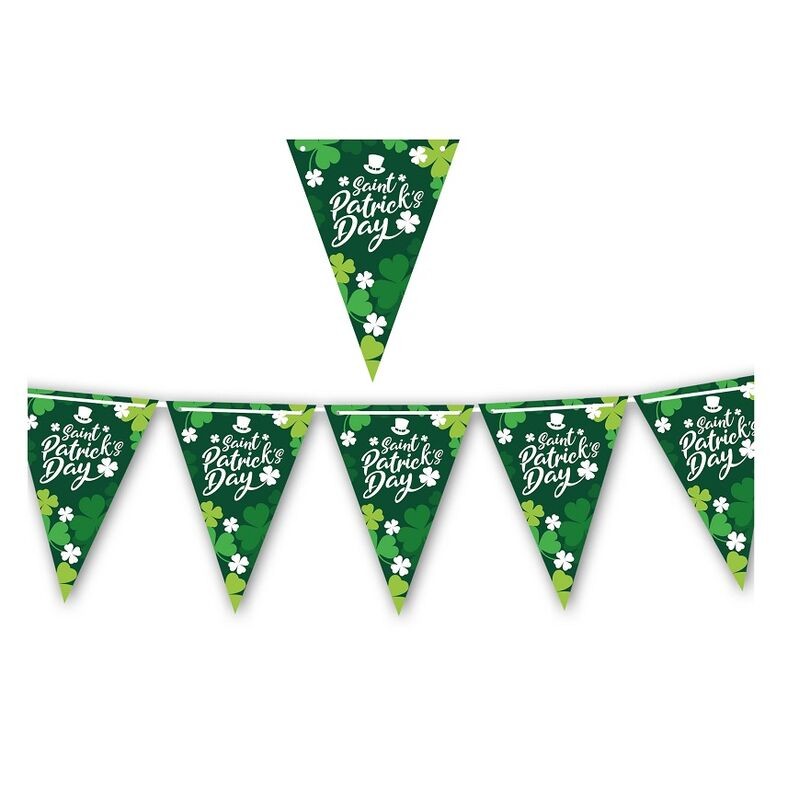 Guirnalda triangular San Patricio 3 metros, cañones de confeti y serpentina para fiestas y eventos